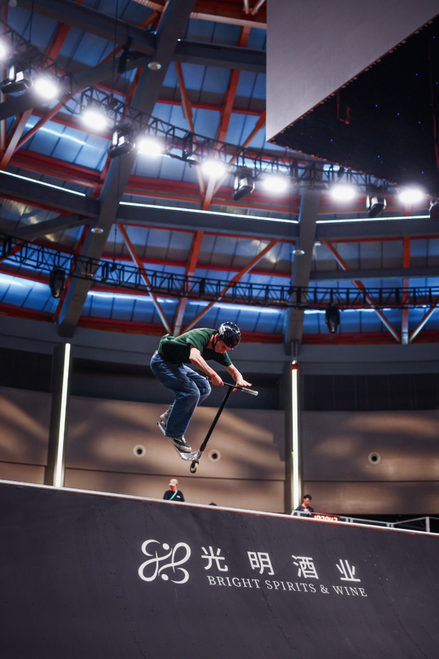 2025年FISE上海站不止白天的精彩,运营时间更延长至22点结束,为此FISE团队带来了夜场大秀——“光明酒业”人字坡狂欢赛。作为FISE法国蒙彼利埃站的标志性夜赛设施,它首次来到上海,将在自由式小轮车、极限滑板车、极限轮滑及滑板项目中展开角逐,选手们都将在人字坡两侧的 U 型池上尽情释放创意,用一系列高难度动作点亮西岸的夜空。